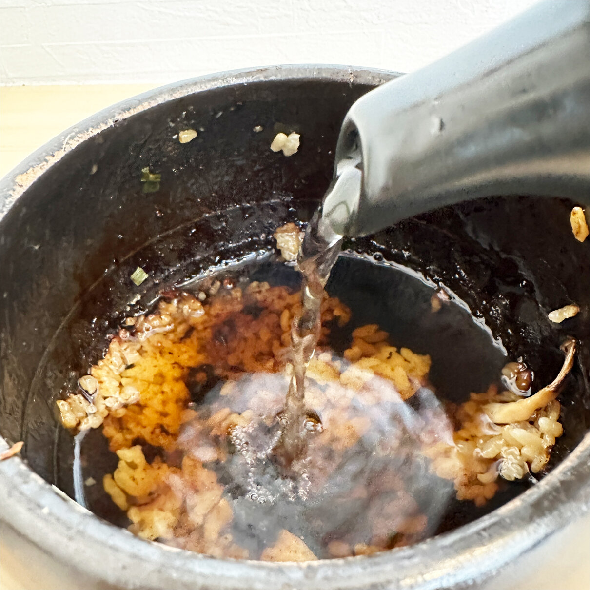 最後は出汁茶漬けでおこげを剥がして頂きます。