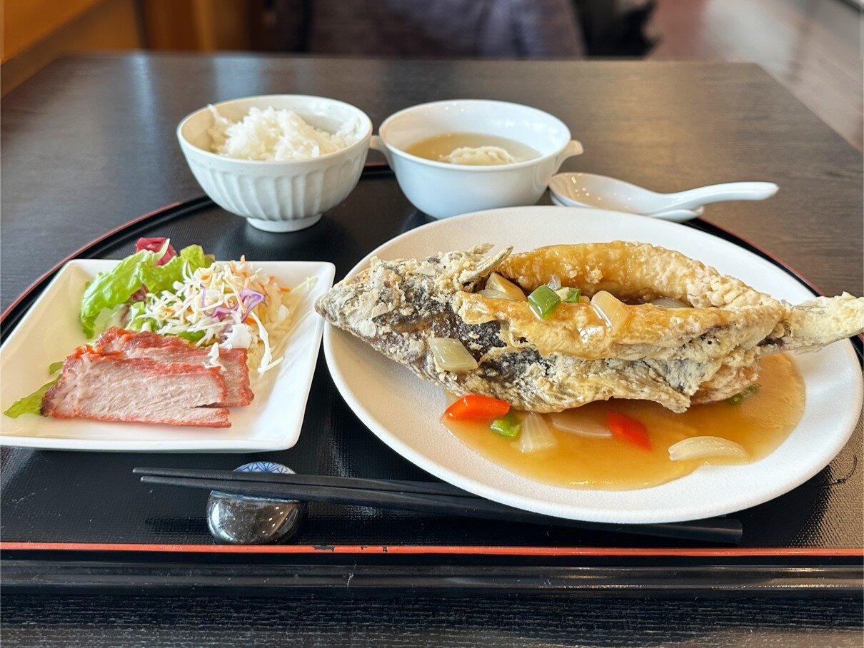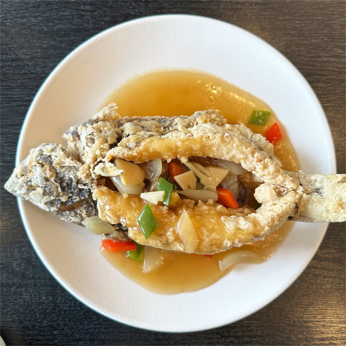 鰈の姿揚げ彩り野菜のあんかけ