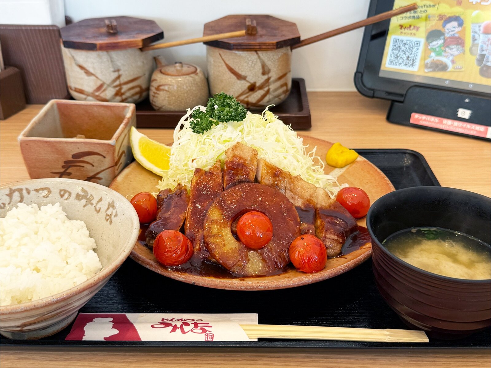 みしなさんのポークチャップは、厚切りロース肉にソースがかかり