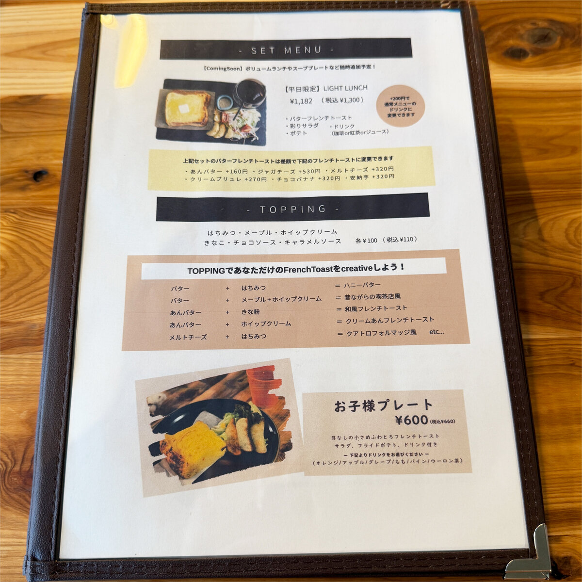 フレンチトーストメニュー