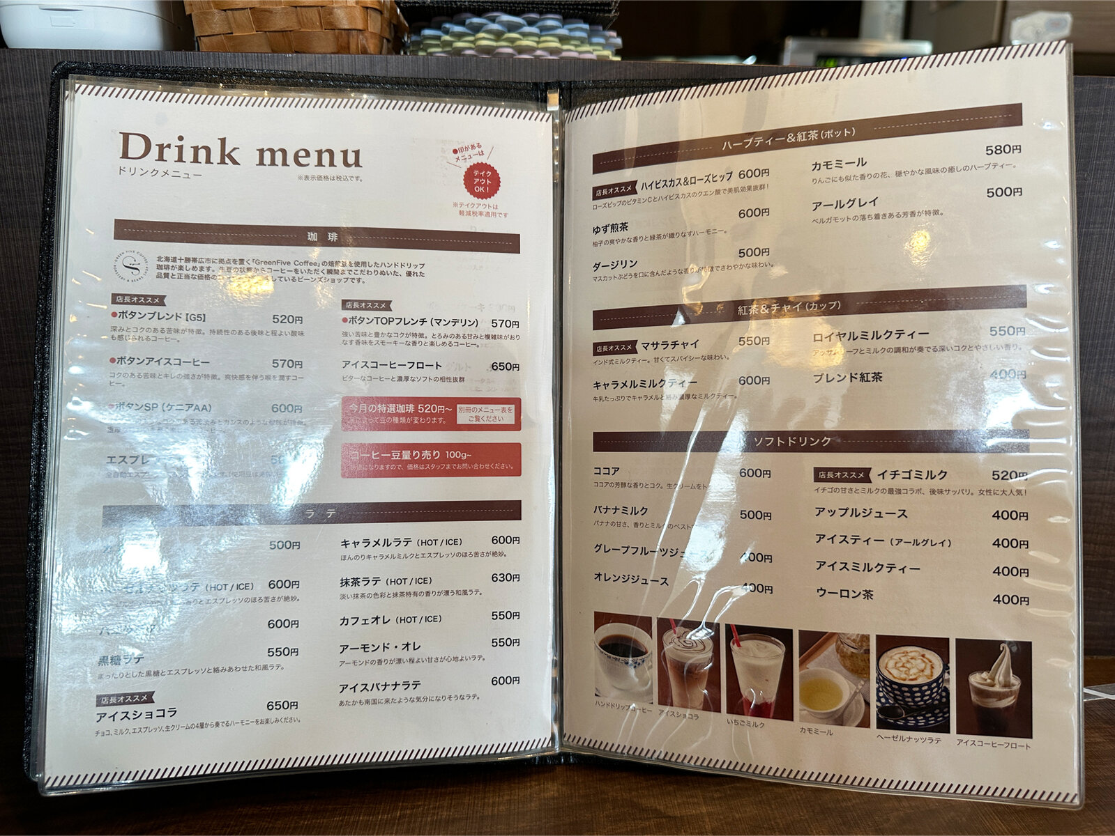 ミニチョコパフェ(650円)・ぼたんブレンド(520円→400円)