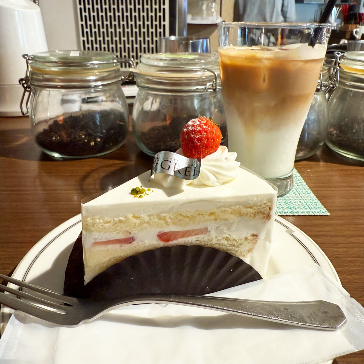 いちごのショートケーキ(550円)・ヘーゼルナッツラテ(650円)