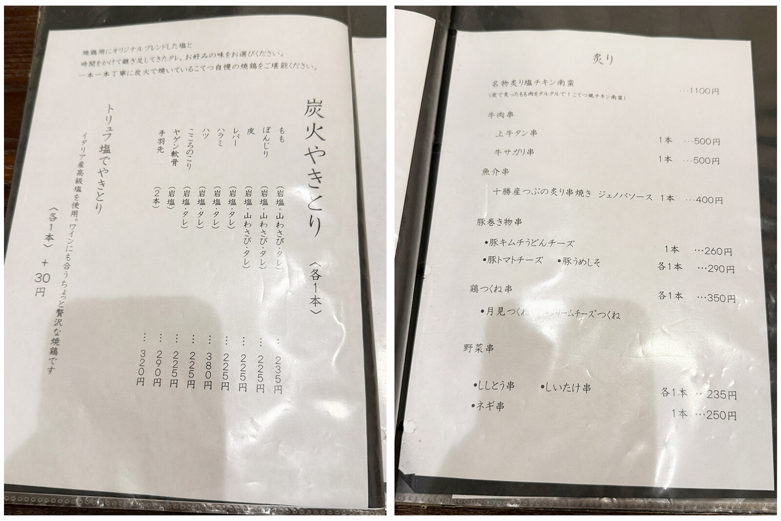 こころのこり・タレ(225円)・もも・タレ(235円)