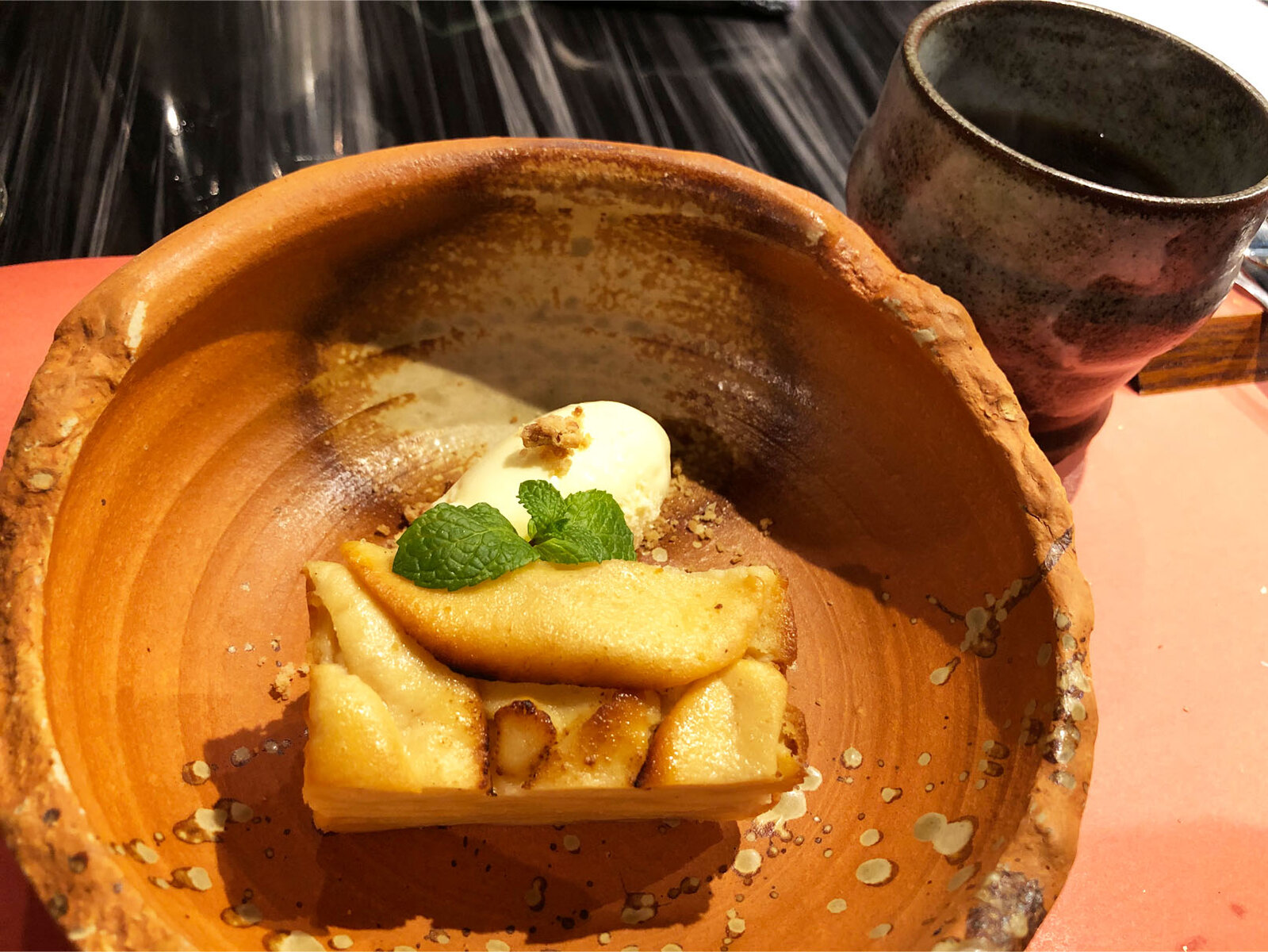 りんごたっぷりガトーインビジブル、バニラアイス添え。