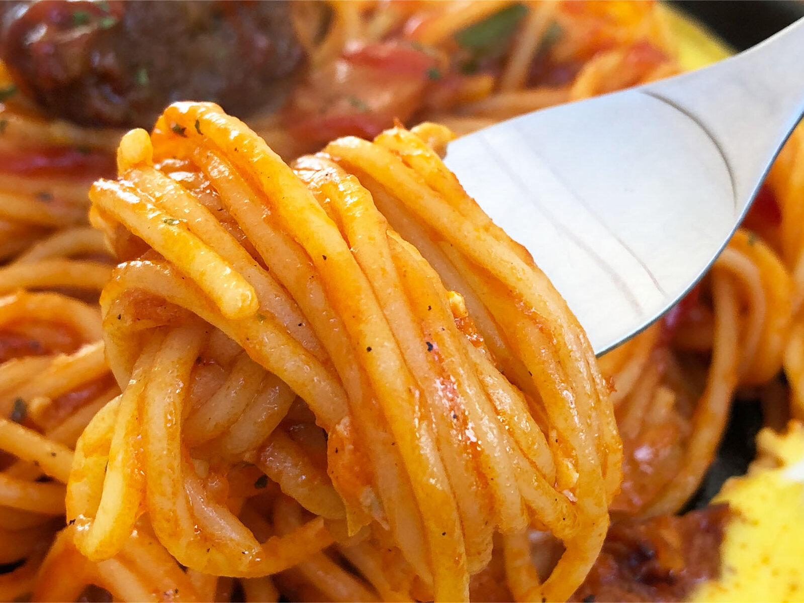 ナポリタンの上に追いケチャップがかかっていたのも嬉しい♬