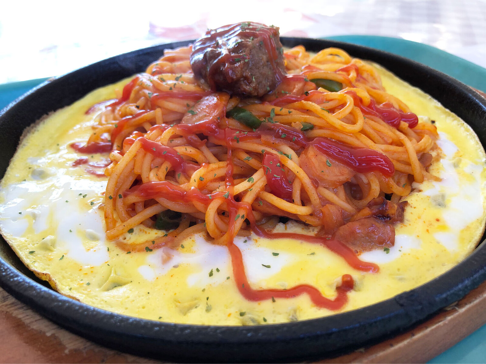 周りに敷かれた玉子もナポリタンに合うんですね~!名古屋風ですか?