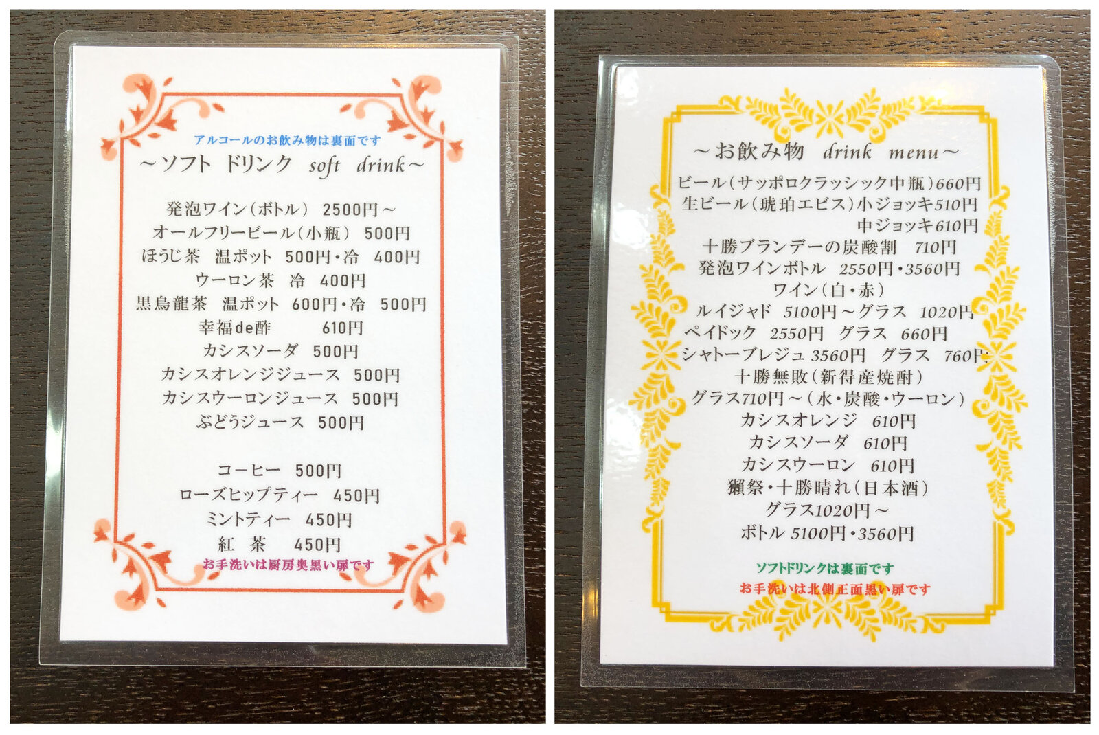 ドリンクメニュー