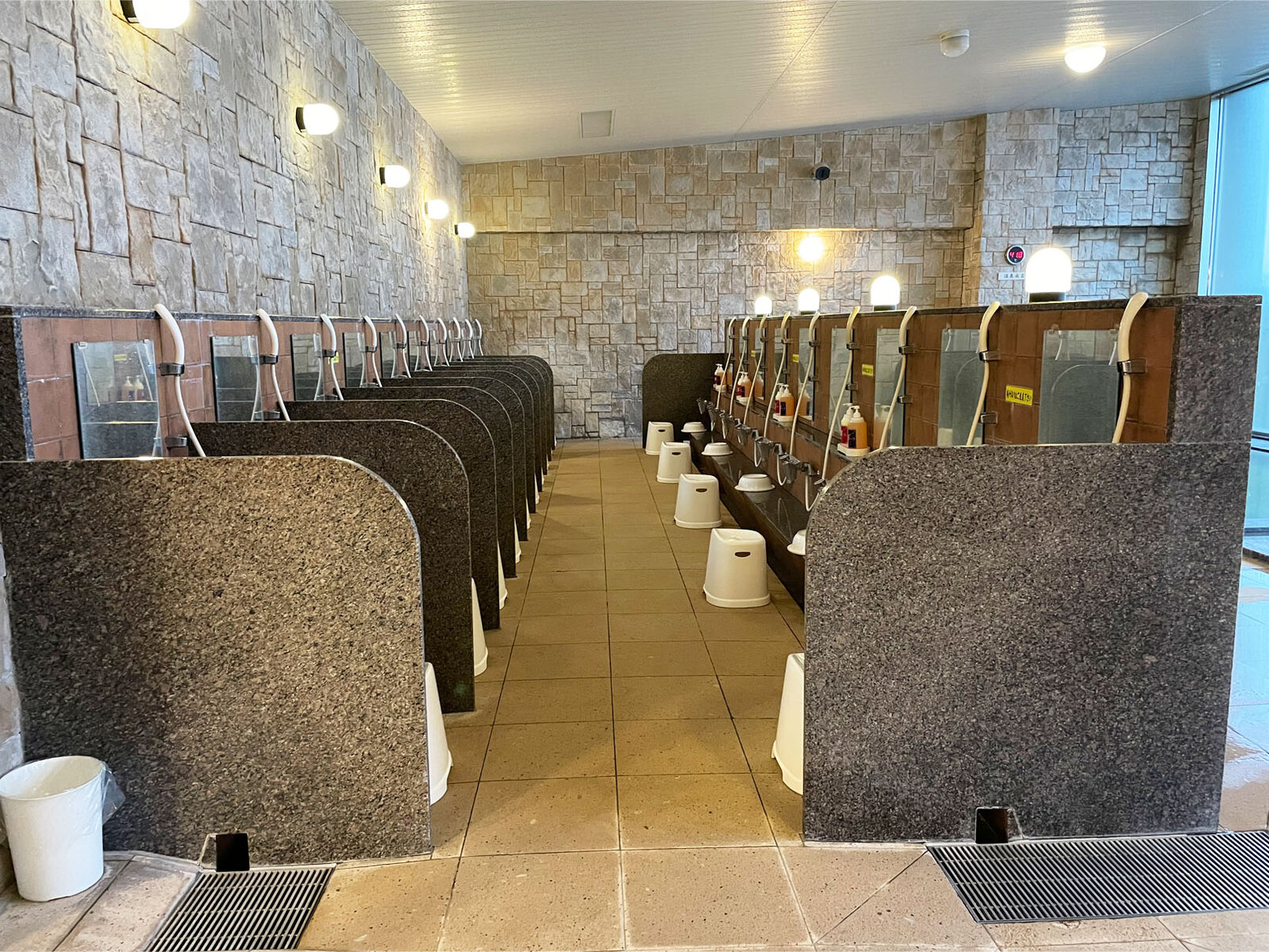 日帰り入浴もある人気の温泉なので、広くて、洗い場もたくさんあります。
