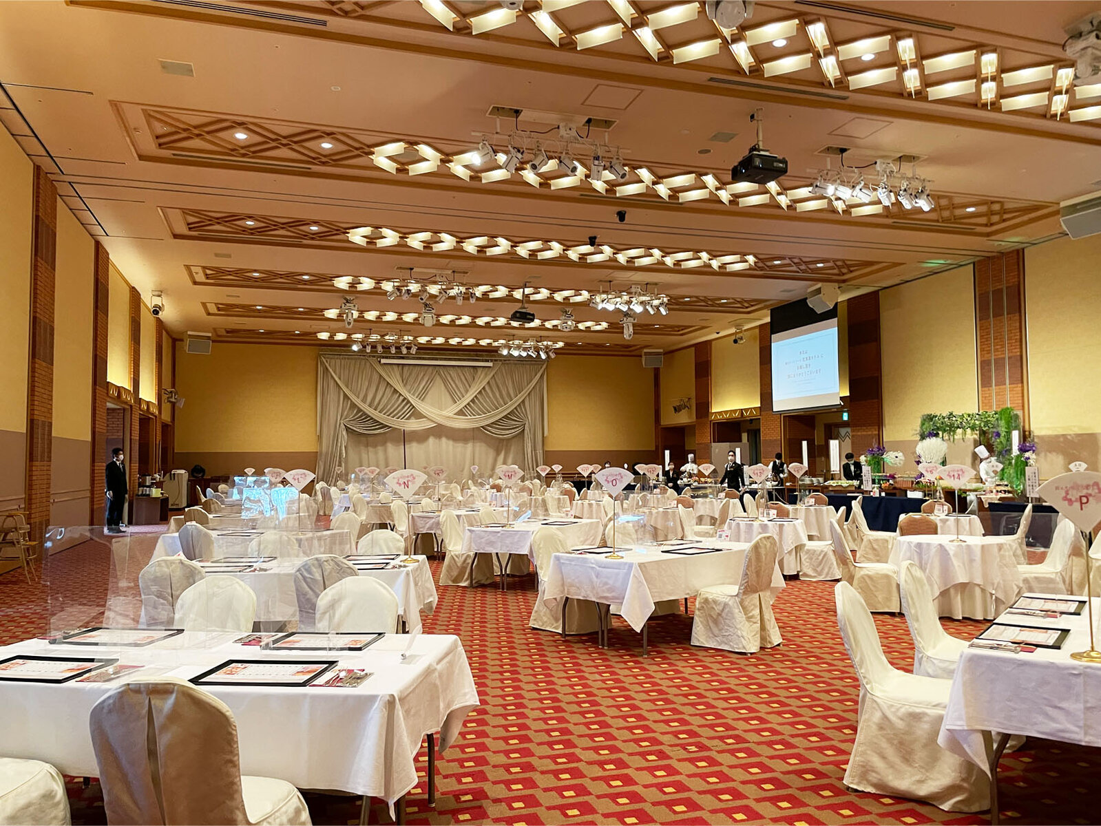 もちろんおしぼりやアクリル板も用意され、会場は換気の為に扉が開かれ