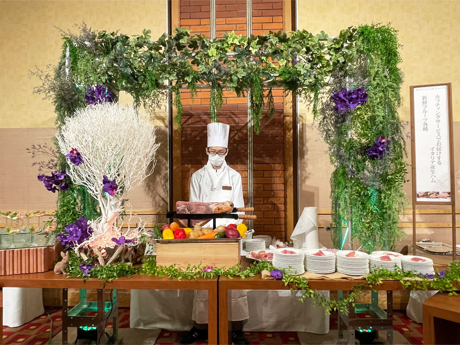 ククミスさん装飾の豪華な生ハムカッティングコーナー