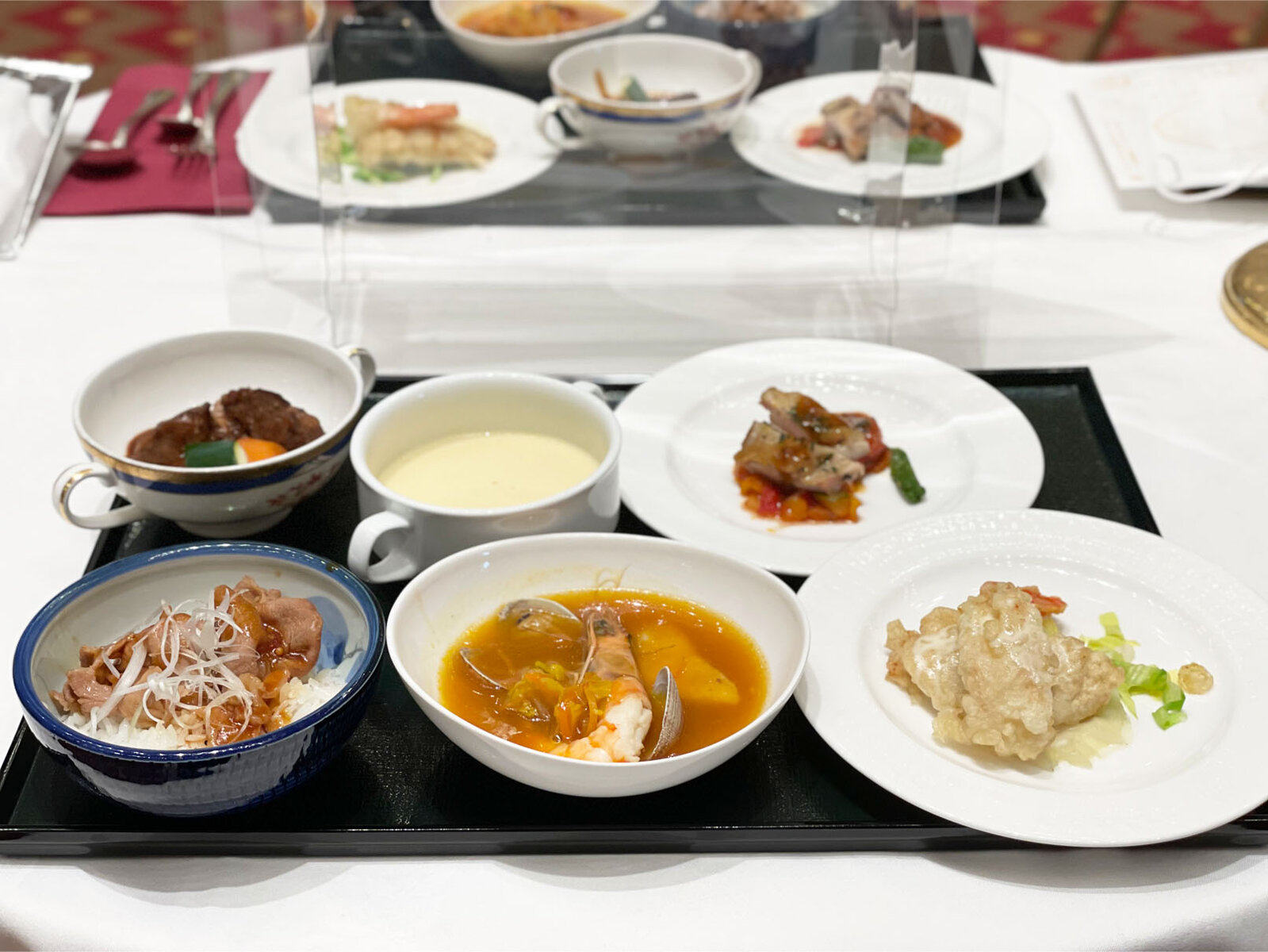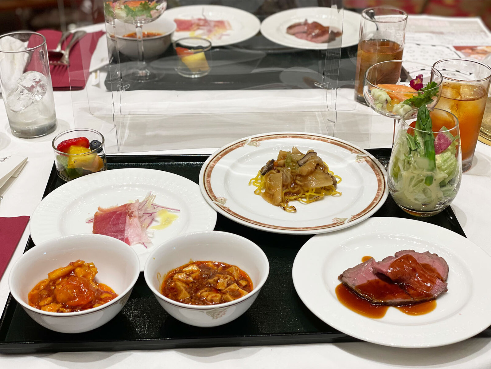 ビュッフェは基本前もってお皿に盛られているお料理をビニール手袋を履いて