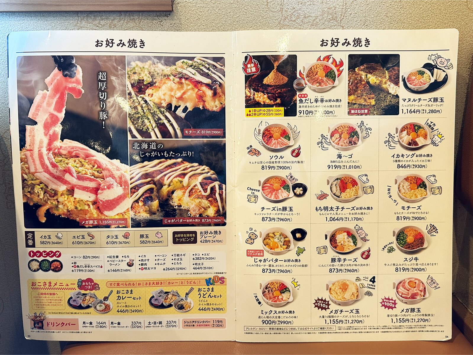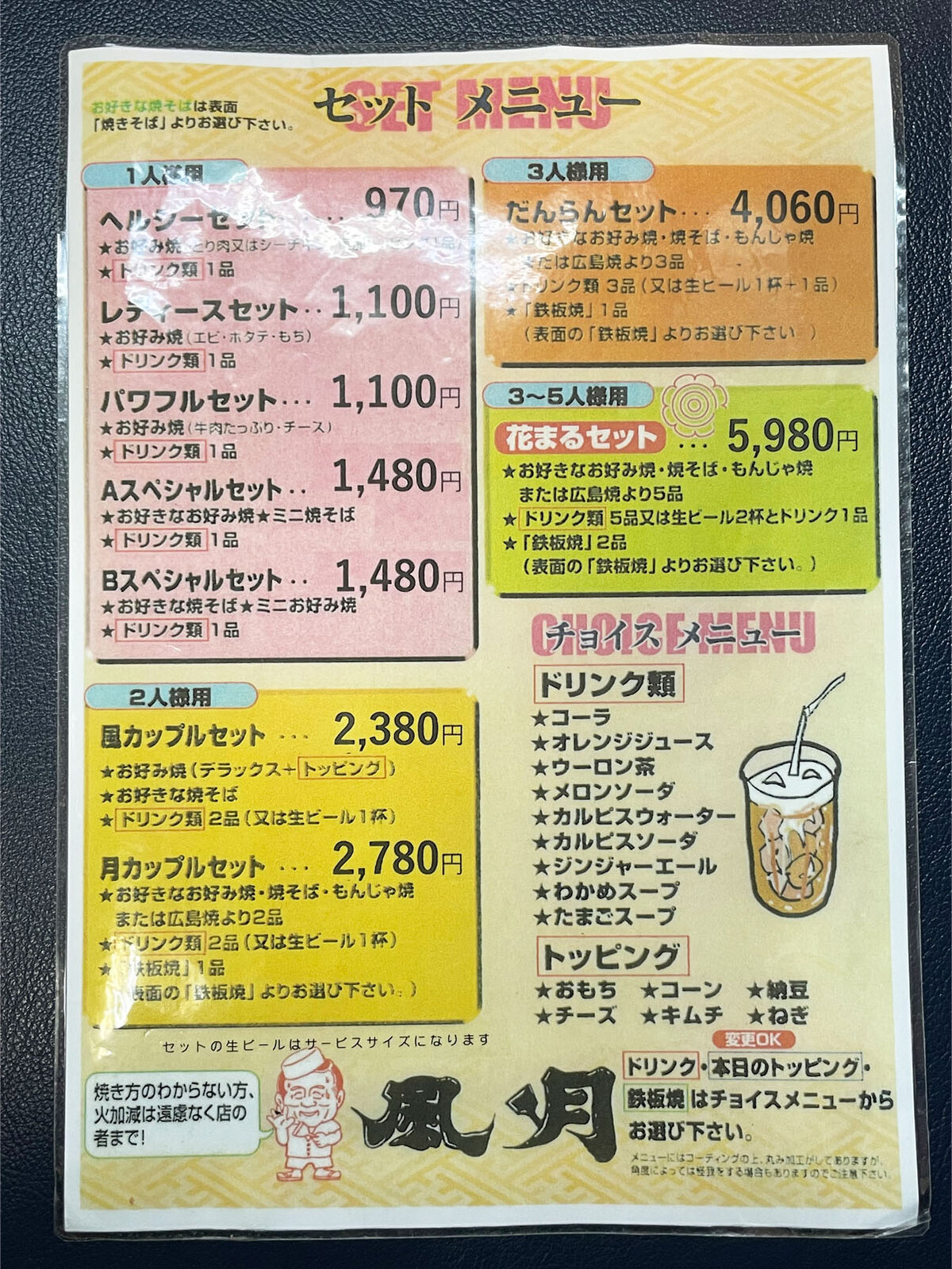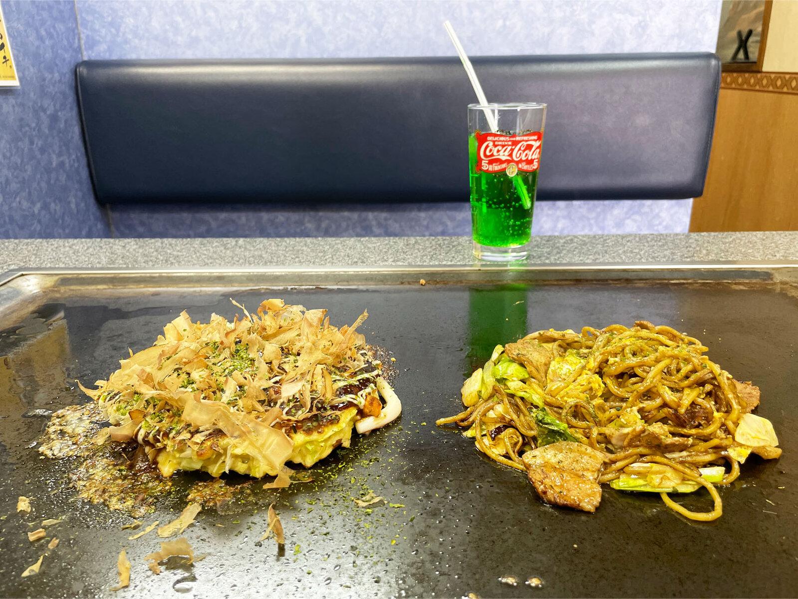お好み焼き、トッピング1点、ミニ焼きそば、ドリンク