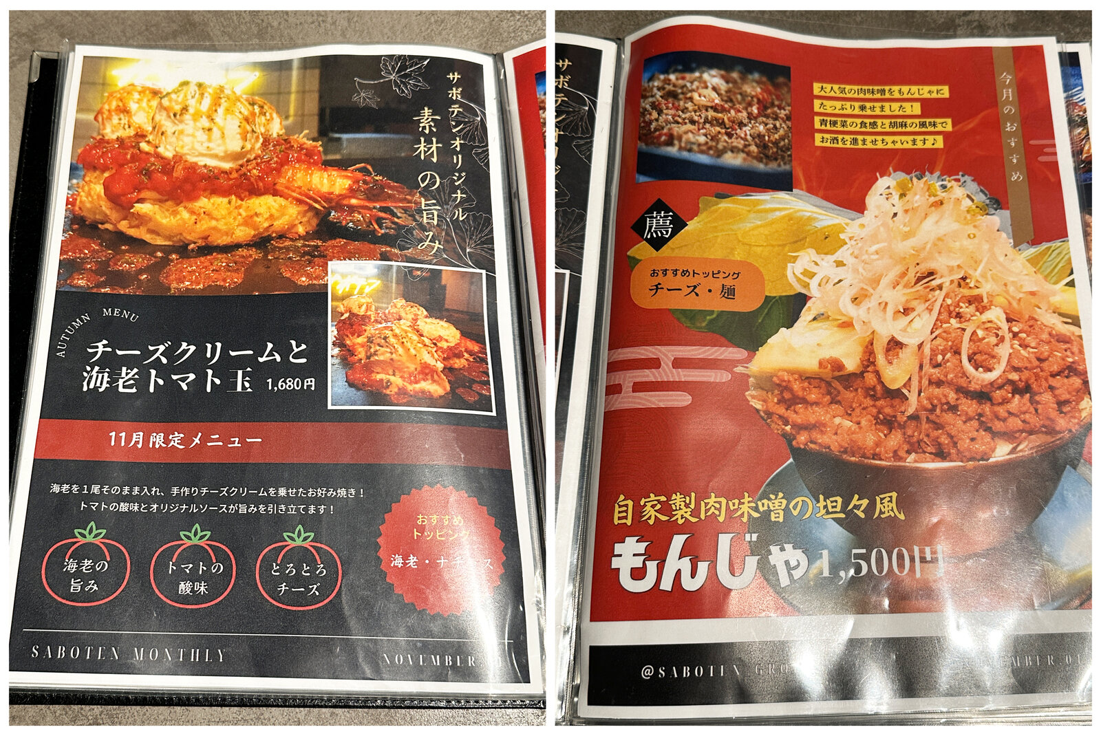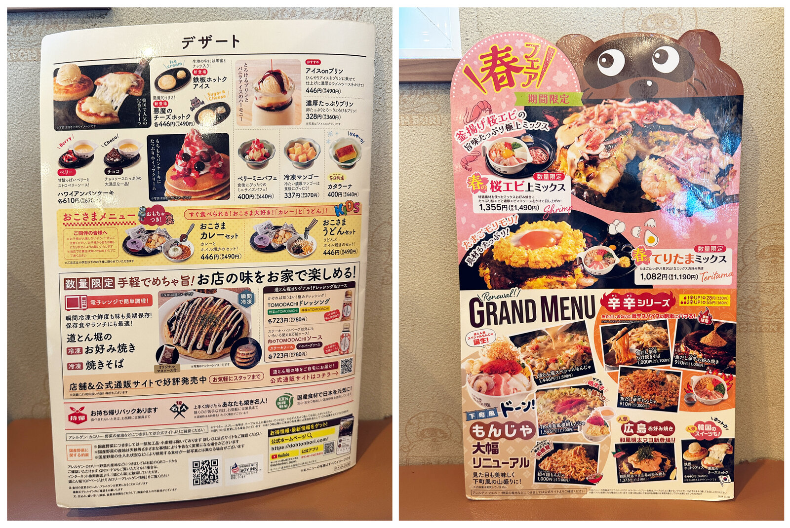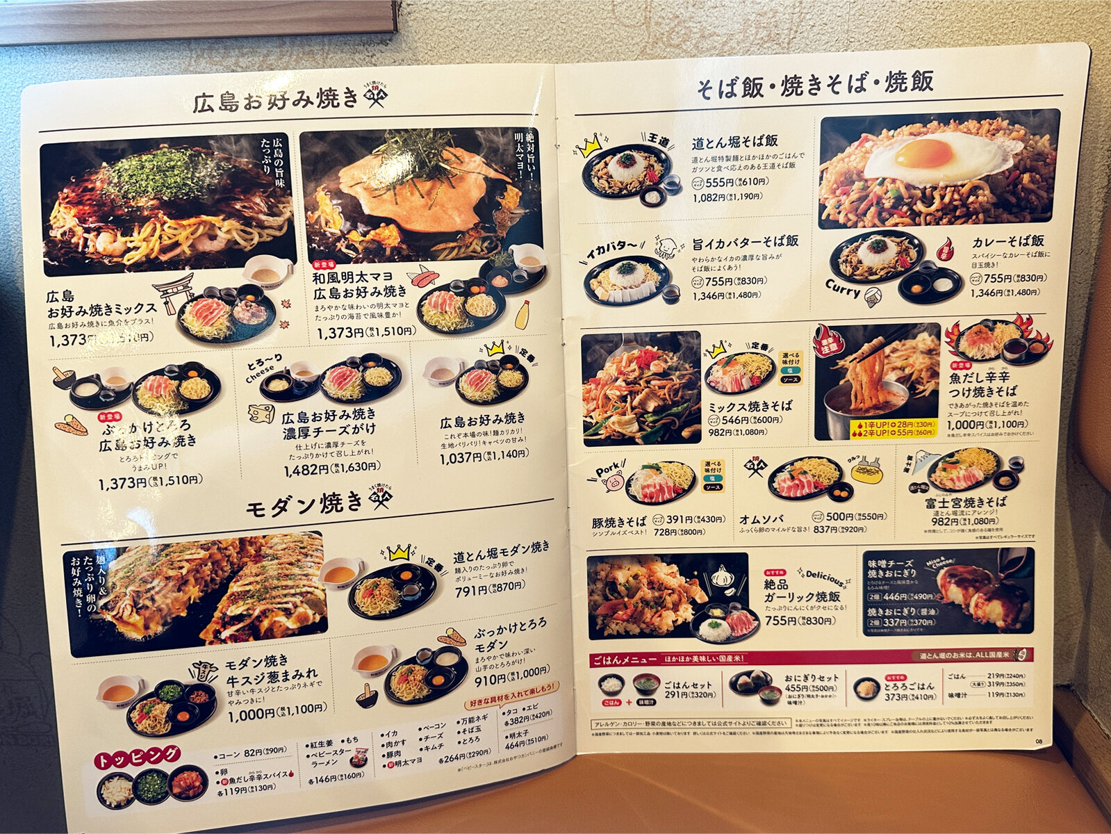 お好み焼き、トッピング1点、ミニ焼きそば、ドリンク