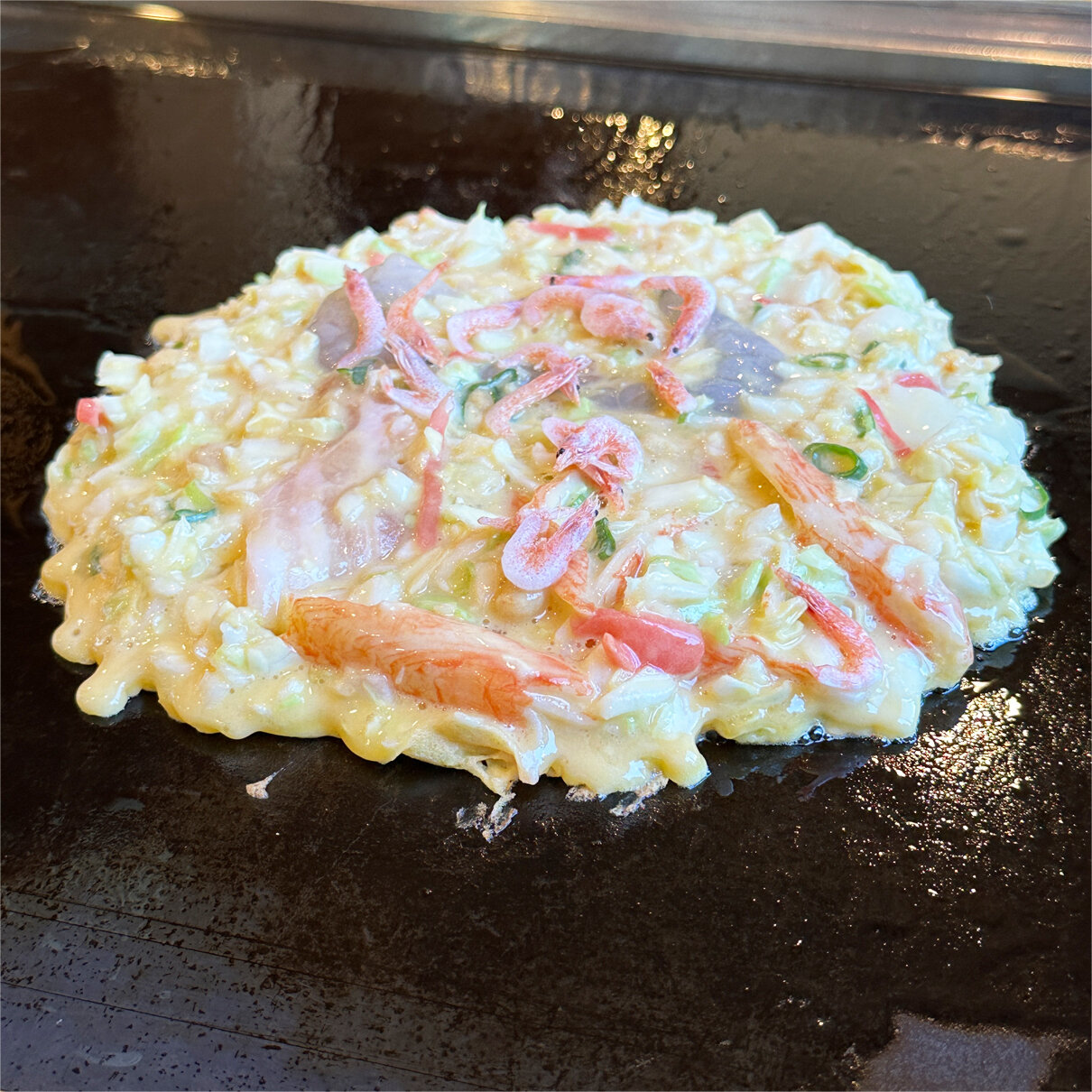 お好み焼きはデラックスにし、トッピングはチーズにしました(*^-^*)