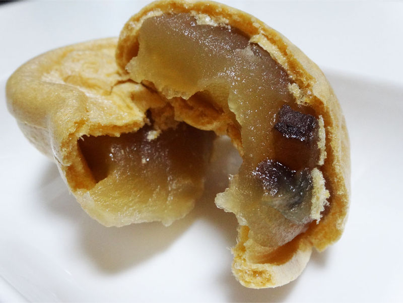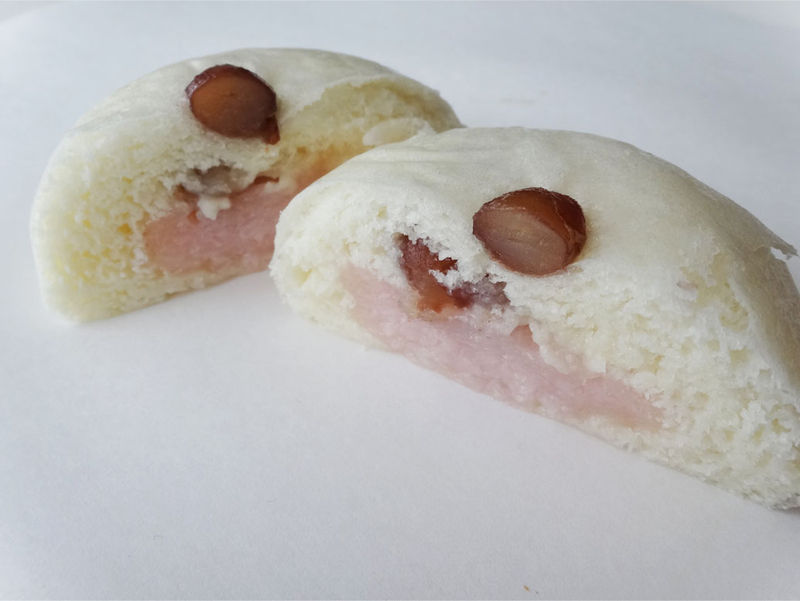 お饅頭の中に赤飯と甘納豆が入っています。結構甘くて、生地ともち米合いますね