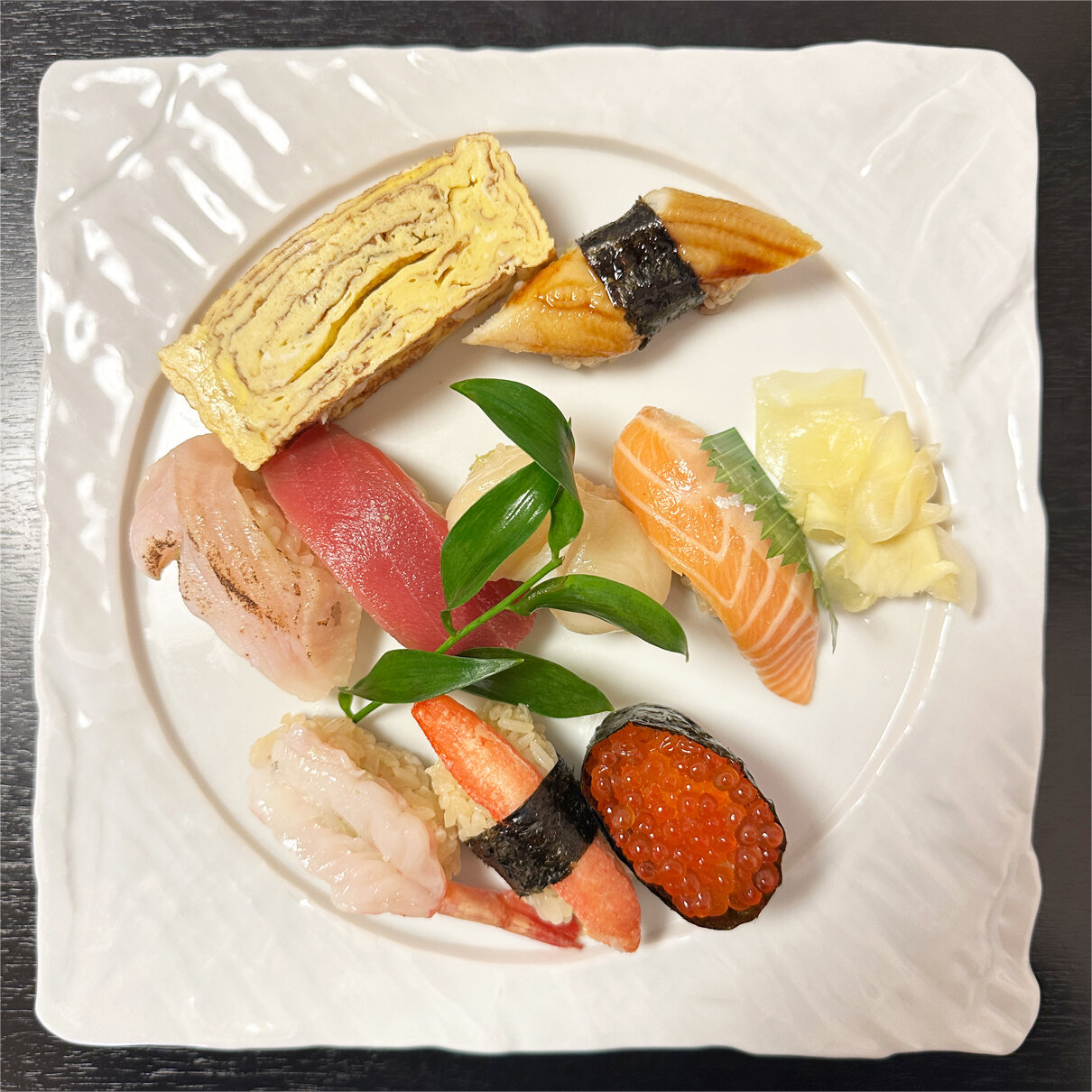 天ぷらのお皿に一貫ずつ乗せて撮りました 笑