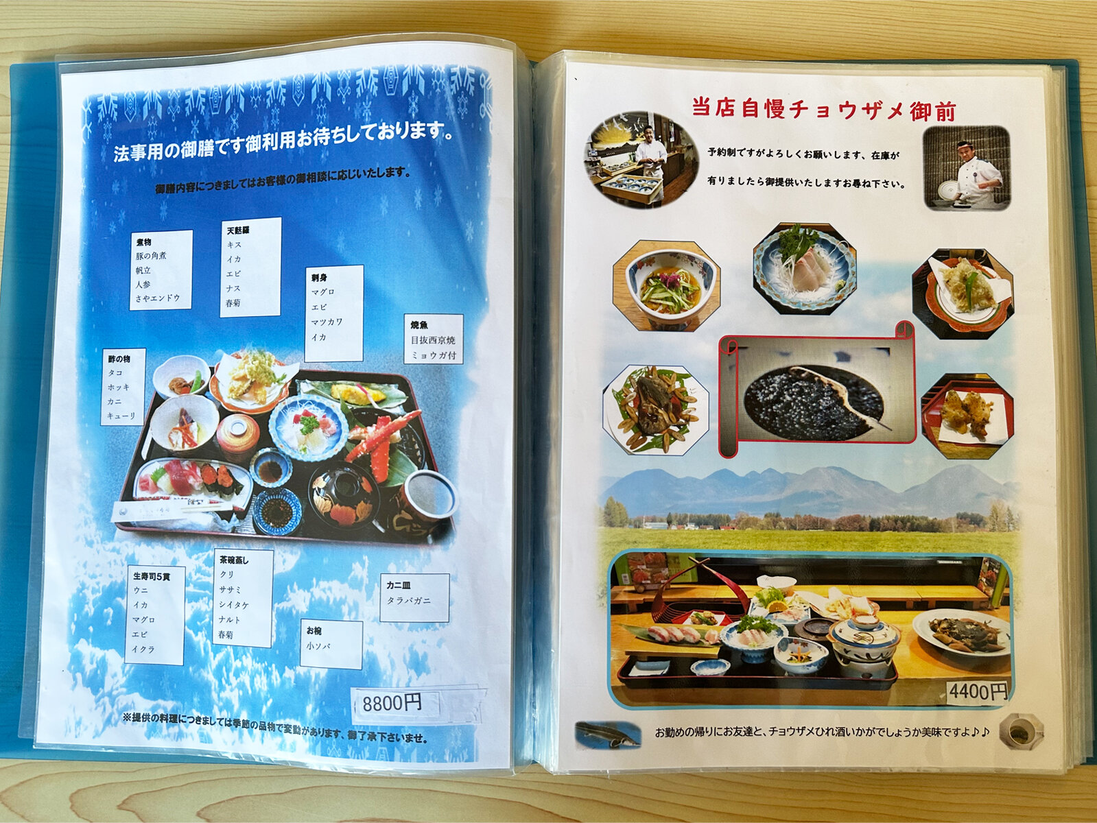 ぼたんえび、サーモン、とびっこ入りほたて、はまち、えんがわ、まぐろ