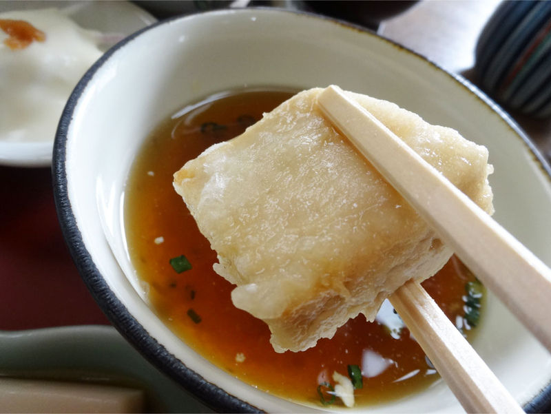 上に乗った納豆を混ぜながら頂きます。揚げ出し好きです。