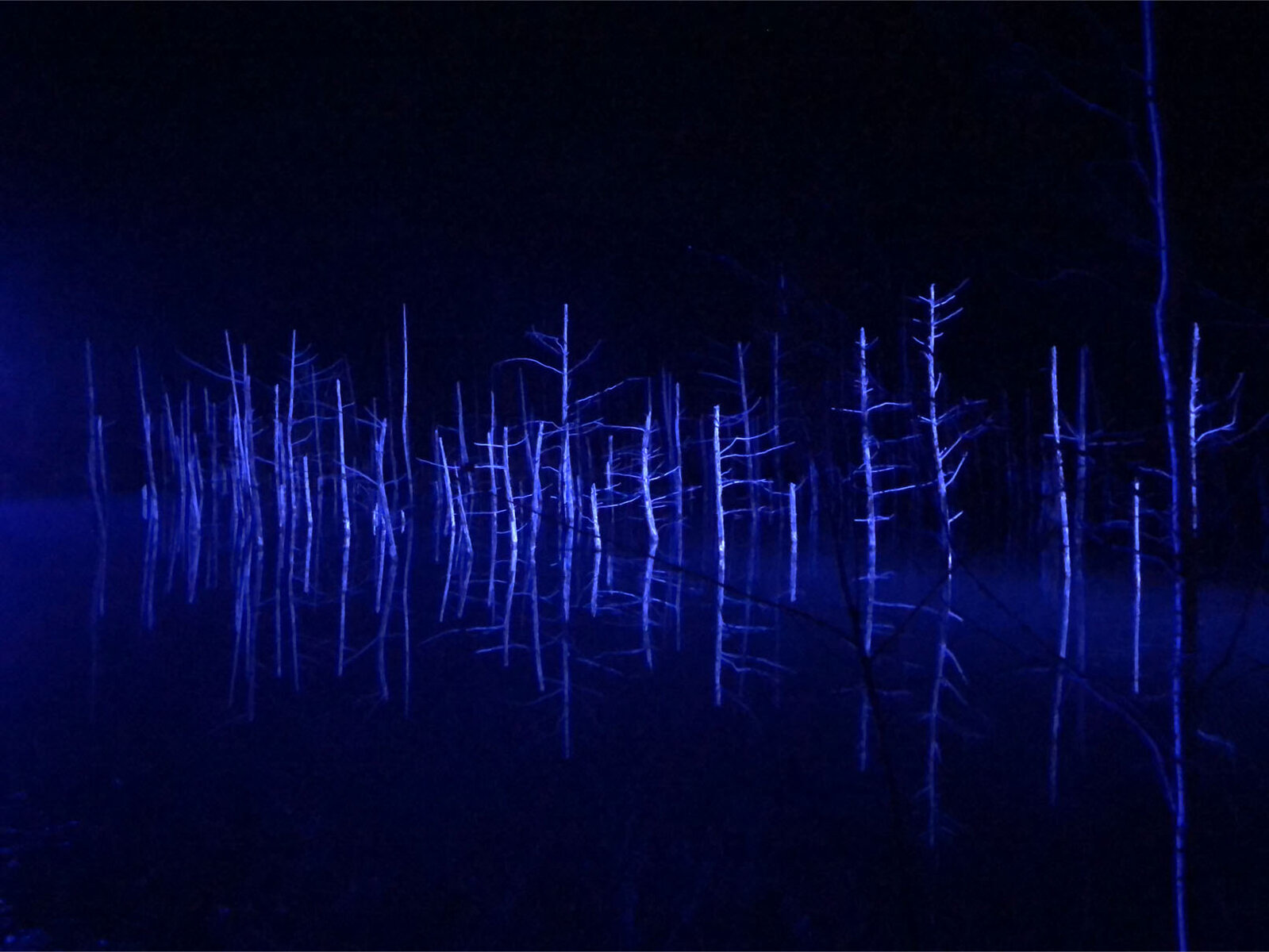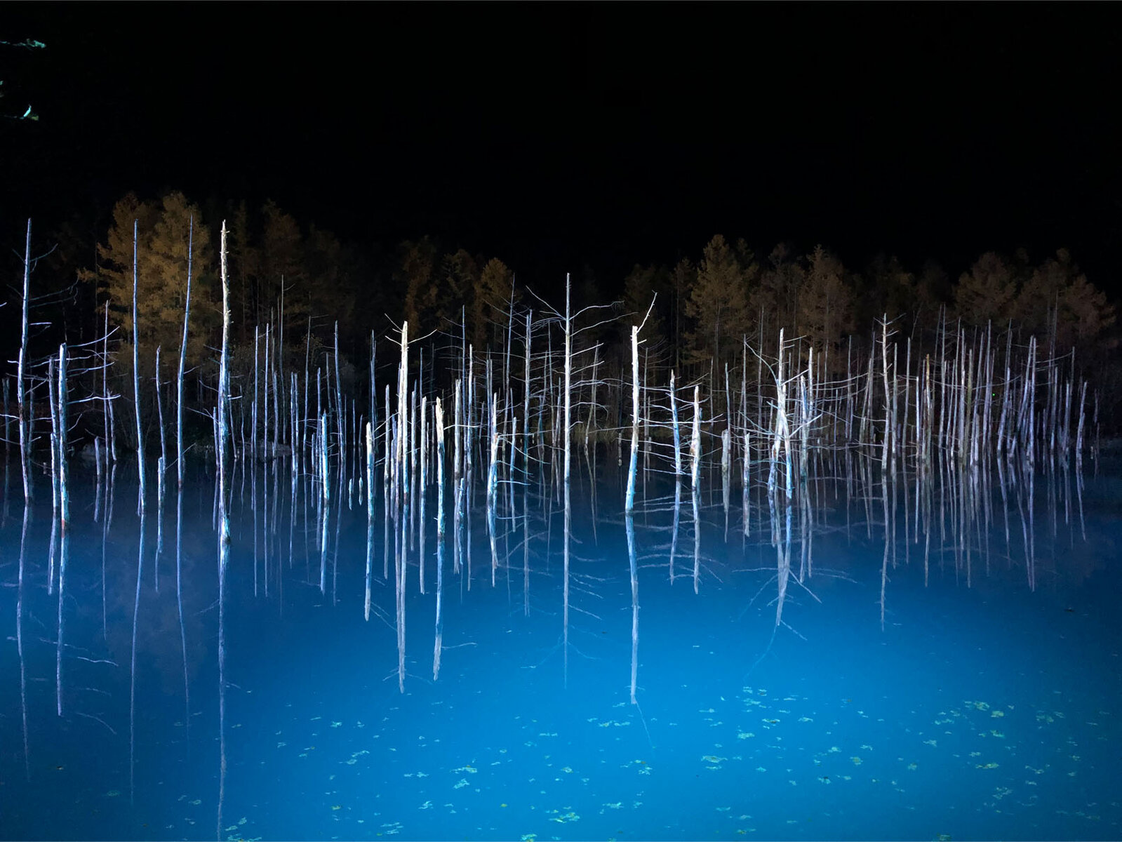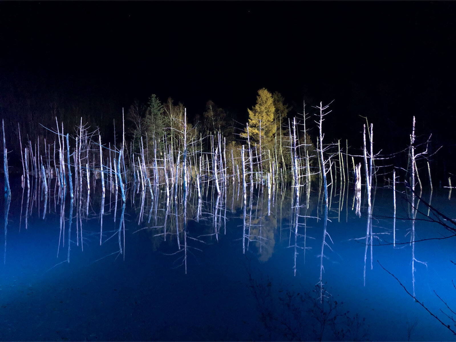 確かに青空もいいですが、青い池に青空が映ったら正直、青い池本来の青が