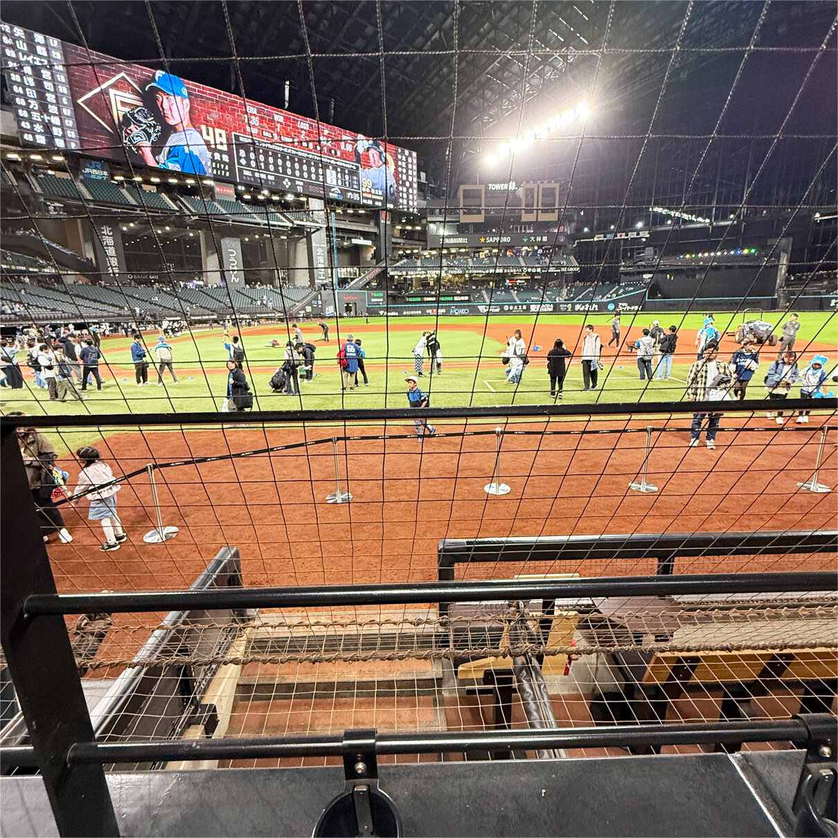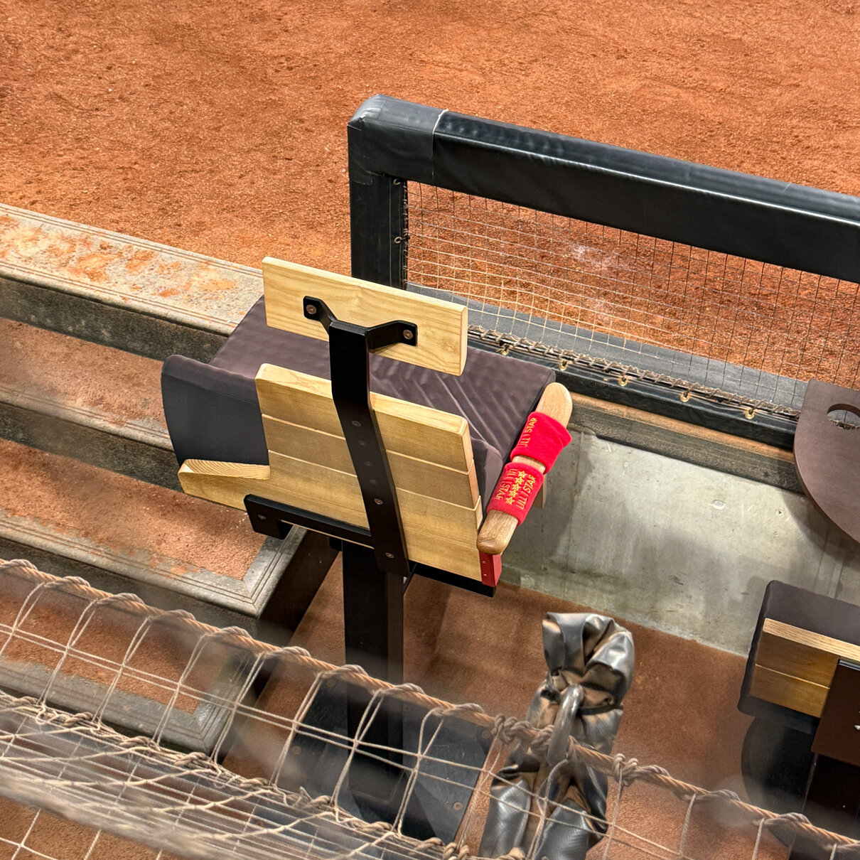 試合が終わり、席がフリーになったので、1塁ベンチ上の席に座ってみました♪